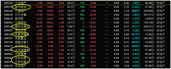 第二沉点是什么是周边的地产商。一共17家涨停,或有屯地,或有政策搀扶。出格是国有参股的地产。像城建,首开,成长,华夏幸福等。